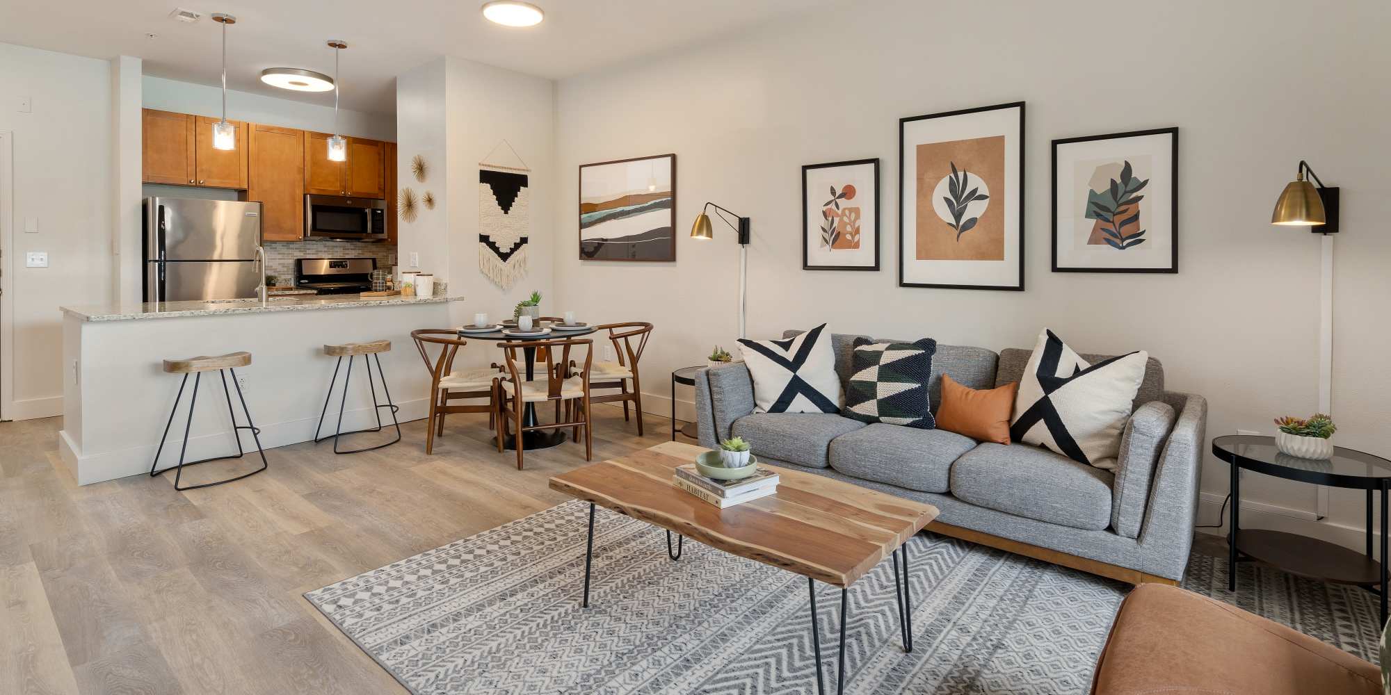 Our garden-style one, two, and three bedroom apartment homes at Sofi Parc Grove are designed for modern living. Thoughtfully designed interiors offer a mix of comfort and style, including a full-sized washer and dryer, open layouts, and wood-style floors that bring everything together.